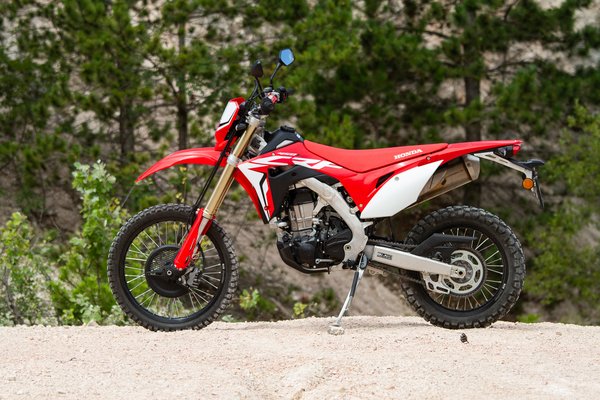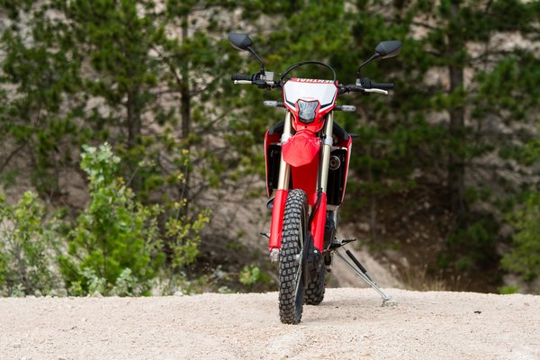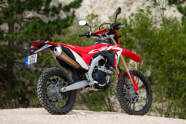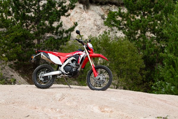 Az alap a Honda CRF450R, ami egy krosszmotor, és ebből származik a többi kivitel. Készült belőle CRF450X és CRF450RX – az X az enduró, lámpával, 18-as hátsó kerékkel (a krosszmotorokon 19-es a hátsó kerék), míg az RX a crosscountry modell, ami a kettő keveréke, például a kerékméret endurós, de nincs rajta lámpa. Ezen felül eltér az áttételezésük, a futómű hangolása, hiszen más karakter kell a fák közé, mint a hosszú ugratókhoz. Ezek tehát a versenymotorok, nálunk egyébként az R és az RX kapható. És van a CRF450L, amit ezekből finomítottak lakossági darabnak.