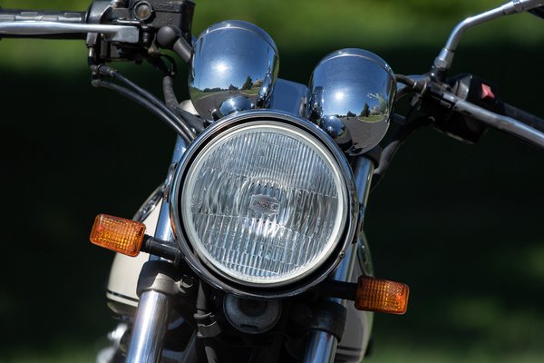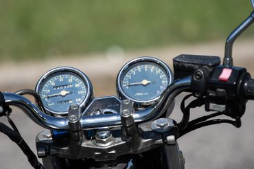 Az állapot meggyőző, a már említett pár gányolást leszámítva ránézésre minden oké. A 25 ezer kilométeres óraállást azért fenntartásokkal kezelném, de egy 26 éves motornál ilyen a megkímélt állapot. A lámpa krómja nem makulátlan, az óracsoporton van egy kis sérülés, de például a telószárak állapota hibátlan, sem a selyemfényű alsó részen, sem a krómszárakon nincs hiba, pedig az utóbbin megjelenő kis rozsdapöttyök sok japán belpiacos motoron megjelennek, és vagy semennyire, vagy csak drágán javítható - mármint a motor értékéhez képest drágán, a gyári, új alkatrészhez képest az a 70-80 ezer forint is aprópénznek tűnik.