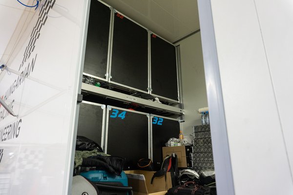 Az már most, az út elején látszik, hogy rendszerben gondolkoznak: minden motorhoz van szállítódoboz, amiből 32 fér be egy kamionba - tehát tíz MIR, tíz 10 Kawasaki Ninja 400, két GSX-R1000 és nemsokára érkezik még 10 gyerekmotor. Ezekhez tartozik még tíz teljesen felszerelt szerszámoskocsi, illetve minden dobozban a motor mellett van két tartalék kerék, hátsó emelő, kormánnyak-emelő (hogy ki lehessen kapni az első villát), egy pár gumimelegítő és egy szerszámos láda - benne a típushoz szükséges alapszerszámok, láncspré, zsírzóspré, powertape, nyomatékkulcs, drótozófogó, guminyomásmérő, infrahőmérő és meg egy sor apróság - tehát ha kimennek a versenypályára, minden ott lesz, a versenyzőnek csak a ruháját és a sisakját kell hoznia.