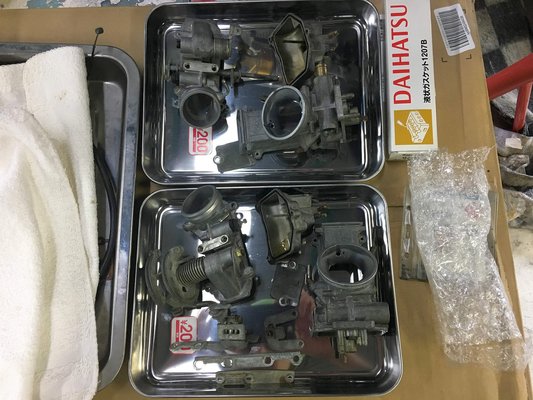 A karbikhoz ugorva, van egy tanácsom. Rettentően bonyolultnak tűnik, de odafigyeléssel, gondosan elrakott és válogatott alkatrészekkel nem lehet baj. Sokkal inkább lenyűgöző mint ijesztő az a mérnöki munka, ami bennük van. Én, aki már csak néhány évig tervezgetett papíron, emelem kalapom azok előtt, aki ezeket csinálta a 3D CAD modellezés hajnalán. Talán ez is az egyik oka annak, miért vagyok annyira szerelmes a karbikba. Miután alaposan átnéztem őket még egydarabban, szépen elkezdtem szétszedni, és listát készíteni, mik azok a részek, amik valószínűleg menthetetlenek, és már mentem is áthordani a fizum a kedvenc aukciós oldalamra. A legegyszerűbb és költséghatékony megoldás az volt, hogy vettem még egy szett karbit, ami hiányos volt itt-ott, és a gazdájának esze ágában sem volt feltámasztani.