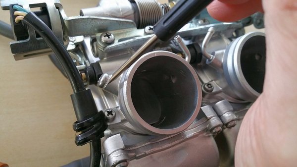 A sima alapjárati röfögésért és az alacsony fordulatszám kezdeti értékeiért az úgy nevezett alapjárati levegő csavar felel. Kár volna bonyolítani, mert tulajdonképpen ez egy csavar. Egy olyan rugóval előfeszített kúpos állító, amire azért van szükség, hogy áthidalja a viszonylagosan gyér állítási lehetőséget a lassú járati fúvókán. A kúp ki- és becsavarásával egy, a karburátor házban lévő megkerülő csatornán adagolhatunk extra levegőt a fojtószelepen érkező levegő mellé. Az én karbijaimon ez az érték a teljesen betekert állapottól egy és egy fél fordulattal kifelé kell legyen valahol optimális.