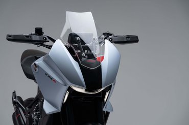 A CB4X tanulmány egyoldalas lengőkart kapott, sportos 17-es kerekeket tettek alá, és széles kormánnyal látták el - ezek keltik a sportos, agresszív benyomást, viszont látszik, hogy egyenes üléspozvíciót ad ki, a négyhengeres blokkról pedig tudjuk, hogy inkább kellemes, mint fenyegető.