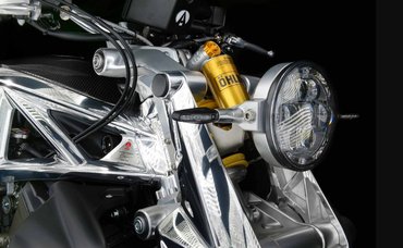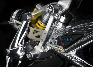 Az első futómű egy Hossack-villa, amibe egy Öhlins TTX rugóstagot építettek, ugyanúgy mint hátra, ahol a 17-es kereket egy egykarú lengőkar tartja.