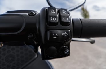 Lehet, hogy hülyén hangzik, de nekem nincs igényem szélvédelemre. 15 fokig öltözködéssel is elvagyok, hidegebb időben meg úgy sincs kedvem motorozni. A szélvédelem inkább zavar, mert például a lábamnak kifejezetten melege volt, hiába nyitottam a kis csapóajtókat a szpojleren, és ebben a bakancsban nem is tudom, mi lenne velem egy Road Glide-on nyáron. A fejidomon is lehet nyitogatni egy kis szellőztető csapóajtót, de egyfelől veszedelmesen előre kell hozzá hajolni, másfelől 150 kilométernyi motorozás alatt nem tudtam rájönni, mi a különbség.