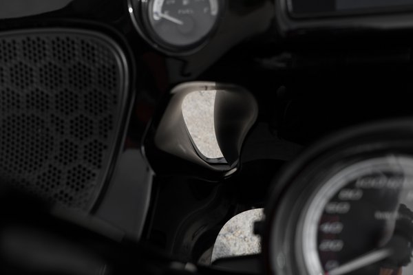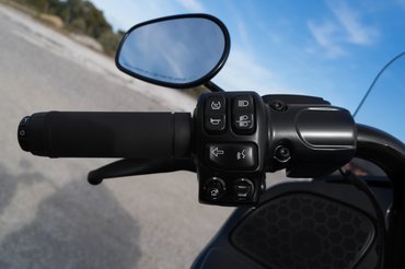 A legevidensebb különbség - túl a formán, nyilván -, hogy a Road Glide fejidoma nem mozog a kormánnyal, tehát mintha rögtön egy kormányszervót is kapott volna. Szmájli. Álló helyben minden motorkormányt nehéz tekergetni, főleg 400 kilós saját tömeg felett, szóval szerintem ez inkább csak műszaki érdekesség, amit az átlagos felhasználó is ért. A szélcsatornát azért nem hiszem, mert a szélvédő speciel rossz; fél fejjel kéne alacsonyabbnak lennem, hogy ne pont a bukósisakomra nyomja a szelet úgy 70 és 130 között nagyjából mindenhol. Nem tudom, miért nem bír a 8-10 milliós túramotorokban gombnyomással állítható szélvédő lenni, mondjuk én feljebb állítanám olyan 8-10 centivel, és valószínűleg úgy is hagynám. A 2010-es Honda Gold Wing ugyanilyen igénytelen volt, mostanra szerencsére sikeresen felszerelték egy keresztirányú elektromos ablakemelővel, de ezt az anyahajó-túramotor műfajt amúgy is kivételesen a Harley nyúlta a Hondától, és nem fordítva.