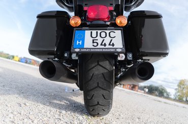 Az effajta cruiderek és touringok mindig farnehezek, még akkor is, ha egy oversize méhkasból készült a fejidom. A Road Glide már annyira farnehéz, hogy meglepően komolyakat lehet hátsóval fékezni. Komolyan: még el is bizonytalanodtam, hogy vajon integrál alapon rak-e bele egy kis elsőt is, de valószínűleg nem, mert komolyabb fékbe taposásokkor azért lekattogja az ABS. Lassan csinálnunk kell már egy nagyobb összehasonlító féktetsztet motorokkal, mert valójában nem tudom, igazi vészfékre ez hány méter alatt áll meg egy mindenféle motort tartalmazó mezőnyben. Úgy képzelném, szar, de a régi Yamaha XJR-emről is azt hittem, aztán egyszer egy éles tesztben simán megálltam egy 100-as tempóról váratlanul satuzó autó mögött.