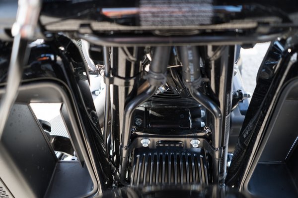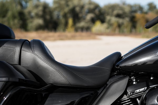 A Touring vázat 2009-ben cserélték a jelenlegire, ami Harley-szinten ropogós, ráadásul most a motor, a Milwaukee 8 is belekerült a hengerenkénti 4 szepeles, nagy (10:1) kompressziójával, dupla gyertyás gyújtásával, lapos égésterével és félig-meddig vízhűtésével (a Harley Dual Coolingnak hívja). Utóbbi volt a Milwaukee 8 motorgeneráció nagy újítása, annyira nyomták, hogy sokáig azt hittük, minden új Milly Vanillyben van víz. De nincs, csak a térdszpojleres Touringokban - az emissziós szarakodás miatti szegény keverékes égést, a körbeépítettséget, az irtózatos súlyt, meg a Harley-szinten nagy teljesítményt (88,5 LE a 114 köbhüvelykes, 3000-es fordulattól) csak így lehetett lehozni anélkül, hogy minden olajcserénél a hengerfejtömítést is kikukáznák.