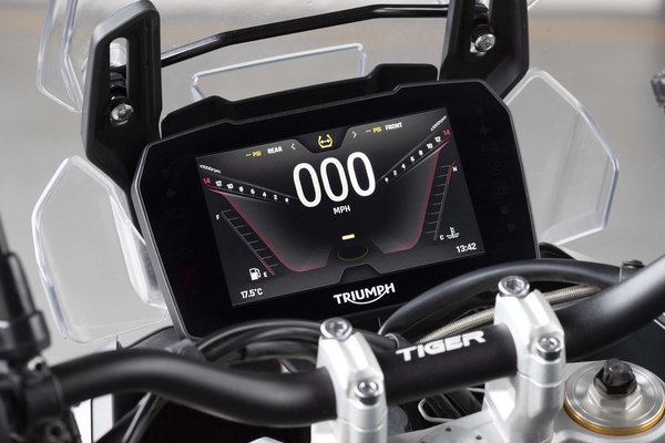 A Tiger 900 egyik legfontosabb újítása a 888 köbcentire duzzasztott blokk, 1-3-2 gyújtássorrenddel, amely állítólag javítja a fojtószelep karakterisztikáját, jelentsen ez bármit is. Az ereje 94 lóerő, vagyis ugyanannyi, mint a 800-asé. Viszont ez már Euro5-ös, és a nyomaték körülbelül 10%-ot javult, 87 Nm-t tud 7250-nél, vagyis 750/perccel alacsonyabb fordulaton, mint a nyolckilós.