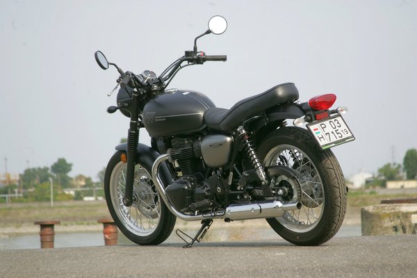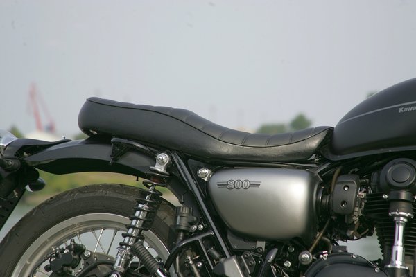 Az igazsághoz tartozik, hogy ennek ellenére a W800-zal mégsem szerettem sietni, és ez nem a blokk hibája. 80-90 km/h felett a futóművet kifejezetten bizonytalannak éreztem: alighanem a csillapítás kevés az amúgy sem túl kemény rugókhoz képest, így a kisebb úthibákon is olyan érzést kelt, mintha a motorral együtt lobognánk az út felett. A szélvédelem teljes hiánya sem támogatja a száguldozást, viszont a vékonyan párnázott ülés miatt ráérős túrázásra sem tűnik ideálisnak a gép: legfeljebb másfél óra haladás után megjön az érzés, hogy mára eleget ültünk.