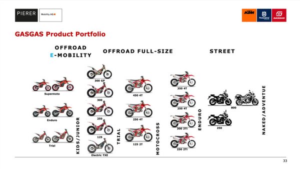 Ezen felül a befektetők számára összeállított dokumentumból kiderültek a középtávú tervek, például hogy a Gas Gas kilépne a kizárólag offroad és trial modelleket gyártó imázsból, és elkezdenének utcai motorokat is gyártani - természetesen a már meglévő KTM alapokra.