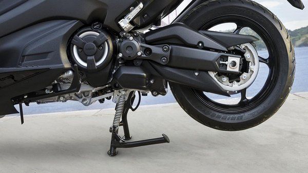 A Yamahánál nem egy új megoldást dolgoztak ki, hanem egy jól bevált régit poroltak le az új TMAX-nál, mégpedig a zárható középállványt.