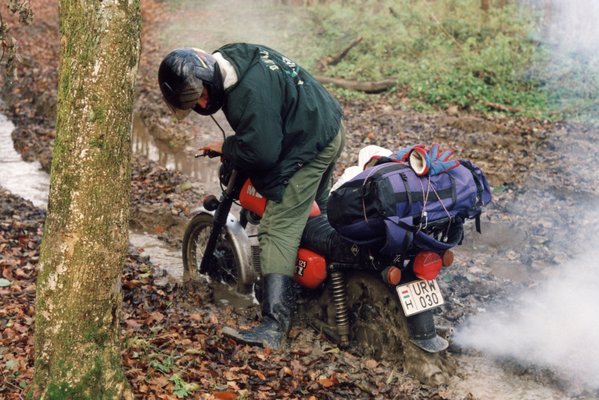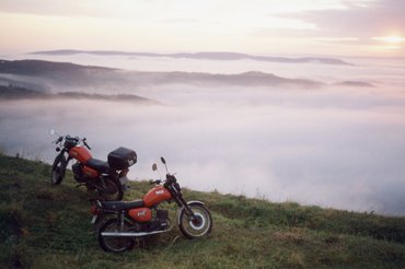 De emlékezetes az első MZ 125-ös délután rettenetének élménye is, amikor 70-nel megálltam a szembeszélben az M0 közepén, óvatlanul kibújva egy kamion mögül. Meg kellett tapasztalnom, mire nem elég 10 lóerő - jobban sikerült mint gondoltam, a frász jött rám három közúti dinoszaurusz között a belső sávban, alig egy órával első motoros túránk indulása után. Ennek a komoly hibának az emléke azóta is minden előzésemben – vagy épp az előzés elhagyásában – benne van. A kis köbcenti, az erő hiánya belátásra, előrelátásra, türelemre, alkalmazkodásra nevel.