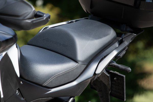 A futómű viszont bámulatos – a félaktív rendszert a Showa szállítja, és szenzorok, villanymotorok ide vagy oda, olyan kapcsolatot ad az úttal, hogy a Versys úgy tud bámulatosan stabil lenni, hogy közben tiszta és egyértelmű visszajelzéseket küld, pontosan kommunikálja, hogy meddig van állat tapadásod, hol van az a pont, amikor még tolhatod keményebben, de azért légy észnél, és hol kezdődik az ingoványos terület, amit már csak akkor feszegess, ha nagyon tudod, mit csinálsz. A gumi és az aszfalt között történő dolgokról ékesszólóan tudósít, miközben nem vesz el semmit, enged játszani, ha kis első fékkel megbillented kanyar közben, ügyesen szűkíti az ívet, szinte magától esik be az új ívre, ha a hátsóba belefestve meglapítod a tengelytávot, azonnal megnyugszik – ugyanazt csinálja, mint egy pengén belőtt hagyományos futómű, csak jobban, ráadásul a körülményektől függetlenül.