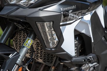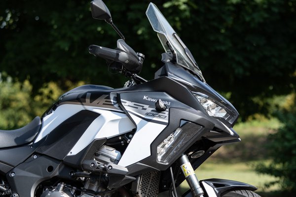 A megjelenést a bozótvipera fejidom határozza meg, de jobban megnézve feltűnik az oldalidomba épített kanyarfényszóró, az elektronikusan vezérelt futómű és a színes műszerfal – ezek mind az SE felszereltség sajátjai. A Versys-t közelről sem rossz nézegetni. Kónuszos a kormány, radiális a főfékhenger, ötletes a lengővilla, szépek a műanyagok és a fényezés, a kézvédő is masszív, érezni, hogy nem csábultak el folyamatosan a meghágható filléreknek. A Kawasaki régóta az igényességével adja el magát.