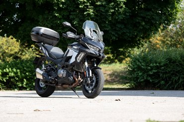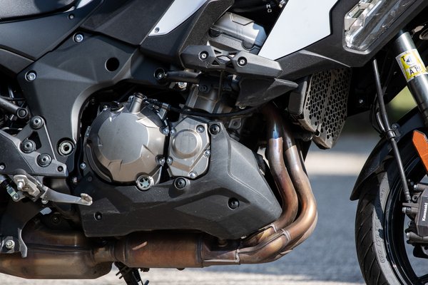 Tökéletesen kiegyensúlyozva, minden érdesség nélkül teszi a dolgát, és már ettől megvan a luxusérzés, ez a sima járás megteremti a GT hangulatot. Nyugalom, rezzenéstelenség, nincs csattogás, kalapálás, hanem egy lavina erejű pehelypaplanon szörfözöl, tökéletes nyugalomban. Ezt a fajta kényelmet, a vadászó bagoly suhanását nem kapod meg egy kéthengerestől. Nincs benne az a baljóslatú reszelősség, mint az S 1000 XR-ben – mondjuk az sem egy rossz dolog, sőt, de ez nyugalmat áraszt. Ráadásul sem a Versys, sem a Z1000 kapcsán nem merült fel, hogy hajlamos lenne széthullani.