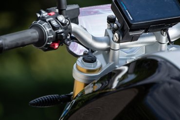 Magával az egységgel nincs probléma, jól látszik mindenféle fényviszonyok között, informatív, még a grafikája is ízléses. Egyetlen rövid pillanatig éreztem, hogy Bill Gates átka ide is elkísért, amikor az egész kijelzőt betöltő nagy piros ablakkal jelezte a gép, hogy fogytán a benzin. Az jó, hogy feltűnően jelez, de az, hogy ez az információ szinte minden mást eltakar, és a kormányon kell piszmogni menet közben, hogy ezen változtassunk, azt jelzi, hogy a szoftveren még lenne mit csiszolni. A levehető gyári navigáció is jól használható, vízálló, kesztyűben sem gond a kezelése, és a rögzítési rendszere is biztonságosnak látszik, így az okostelefonok világában sem tűnik értelmetlennek.