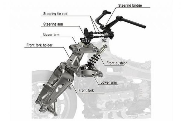 A Honda új szabadalmi rajzai arról árulkodnak, hogy a Gold Wingnél már bevezetett Hossack-féle (feltalálója: Norman Hossack) első futóművet további modelleknél is használnák - például naked bike-nál vagy robogón.