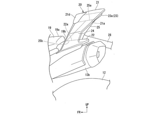 A Honda legújabb szabadalmi rajza már az a szint, mintha direkt azért csinálták volna, hogy a mindenre ráugró, hiszékeny újságírókon röhögjenek a gyárban: feltalálták a motoros hátsó spoilert.