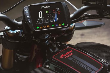 Az Indian egy új változatot készített az FTR1200-ból, amellyel a flat track versenymotorjuk, az FTR750 sikereit ünneplik meg - a gyári csapattal a kéthengeres, 750-es géposztályban háromszor nyertek bajnokságot, és ezt dörgölik a Harley orra alá az FTR1200 Carbonnal.