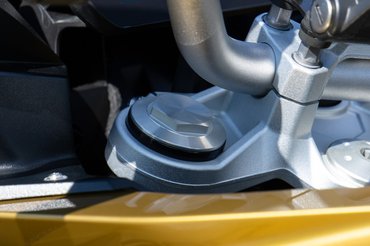 Az XR-nek lehet kenni rendesen, a karcsú motoron jól lehet mozogni, a széles kormánnyal pedig könnyű becélozni a kanyarkijáratot. A futóművel sok dolgod nincs: a 43 mm-es első villa nem állítható, a központi rugóstagot pedig tekergeti helyetted az elektronika, elég a menüben kiválasztani, hogy egyedül vagy utassal mész, és hozzáigazítja a terheléshez az előfeszítést, a csillapítás karakterét pedig az üzemmódhoz választja - lényegében mindegy, hogy Dynamic vagy Road beállítással mész, ez mindenhogy feszes, jó úton élménydús, rossz aszfalton pedig hajlamos rázni és pattogni. Ki lehetne hozni ebből sokkal többet is, de a tökéletességet meghagyták a kilós XR-nek.