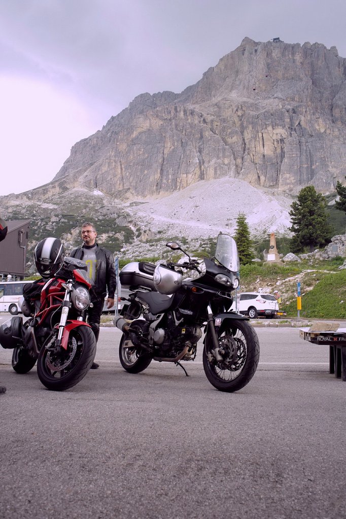 Mondanom se kell, azért hiányzott a motoros világfelfedezés öröme, az, hogy nyeregből nézzem végig Lienzet, a kormány szarvai mögül, akár egy csúzliba készített lövedék, lássam meg a hatalmas, komor hegyeket, álljak meg full protektorosban egy kávéra Cortinában, másszam meg aperitifnek a Falzaregót. Motorról alámerülni a túra bugyraiba sokkal-sokkal romantikusabb és többdimenziós élmény, mint az autó bezárt dobozából végigélni.