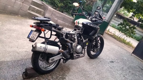 Igazából én már a látvány alapján lemondtam a gépről, mert testközelből baromira nem volt bizalomgerjesztő, de ha már ott voltam, és mivel az eladó szimpatikus volt és laza, ezért elkértem egy körre, hogy legalább tudjam, milyen egy ilyen filléres, hulladék, olasz enduró.