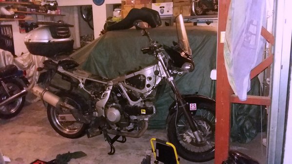 Aztán jött egy műszaki vizsga a nyáron, s a fékpadon kiderült: üt a hátsó fék. Még épp határértéken belül van, de kevés kell ahhoz, hogy forgalomra alkalmatlan legyen a motor. Rendeltem az olaszoktól egy új tárcsát, s nehéz szívvel bár, de először megbontottam a szerkezetet. Kicsit tartottam tőle, mert hiába volt minden konkurensénél 15-30 kilóval könnyebb annak idején a Gran Canyon, attól még egy nagy és nehéz dög az eddigi kétkerekűimhez (mínusz a Yamaha XJ900 ólomtehén) képest. Kár volt félnem.
