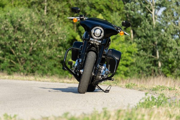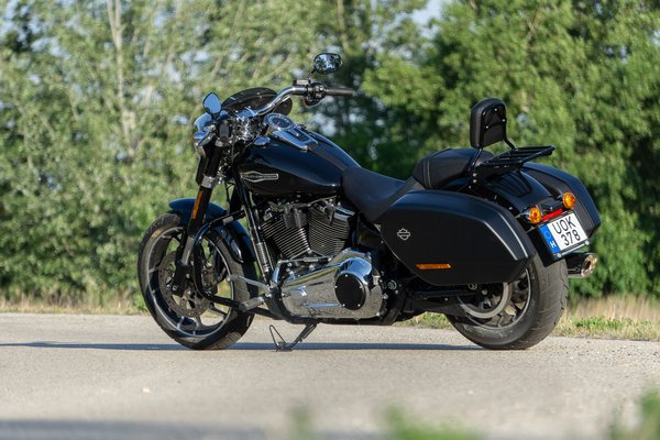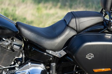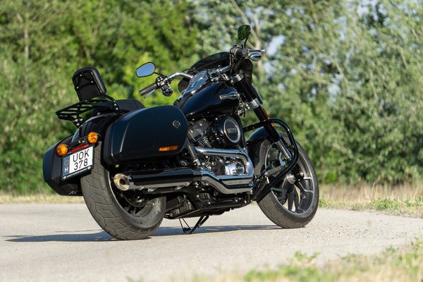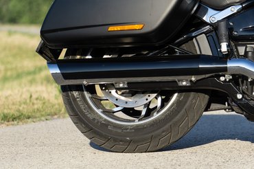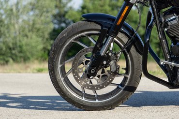 2017-ben mutatták be az aktuális Softail vázat, melyet a cég történelmének legnagyobb fejlesztési projektjének neveztek. Könnyebb és merevebb lett, mint a korábbiak, ami jót tesz a vezethetőségnek, és ezek alá végre elég jó futóműveket is sikerült tenniük - egyáltalán nem túlzás azt mondani, hogy ennyire jó alapja még soha nem volt a Harley-nak. A Sport Glide-nál a 107-es, azaz a kisebb, 1745 köbcentis blokkot közvetlenül a vázhoz csavarozták, gumibakok nélkül, így csak a két kiegyensúlyozótengely tompítja a vibrációkat. Mármint csak Harley-s értelemben tompítanak bármit is, hiszen ők különválasztják a jó- és a rossz vibrációkat, csak az utóbbiakat szűrik ki, és arra tippelnék, rossz vibrációból eredendően kevesebb van, mint jóból. A nagy V2-esek csühögése mindig a jók közé tartozik.