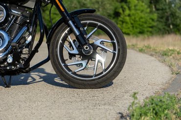 A Sport Glide neve 50%-ban átverés, a hátsó rugózás stimmel - Glide, tehát nem merev vázas -, de a sportot sehol nem találtam. A fordított villára még rá lehetne fogni, ha az utóbbi tíz évben nem került volna lényegében minden motor alá hasonló - a szimpla első tárcsafék pedig azt is komolytalanná teszi. Állítólag azért csak egy tárcsa, mert így jobban érvényesül az első kerék. Az tényleg jól érvényesül, de én a jól érvényesülő fékhatást is szeretem, mert például az őzeket és a vaddisznókat nem érdekli az új Mantis felni. A hátsó fék viszont végre érdemi munkát végez - a Low Rider S-en érzésre csak dísznek volt, ezen viszont egészen jó. Rejtély, hogy lehet ekkora különbség látszólag azonos alkatrészek között.