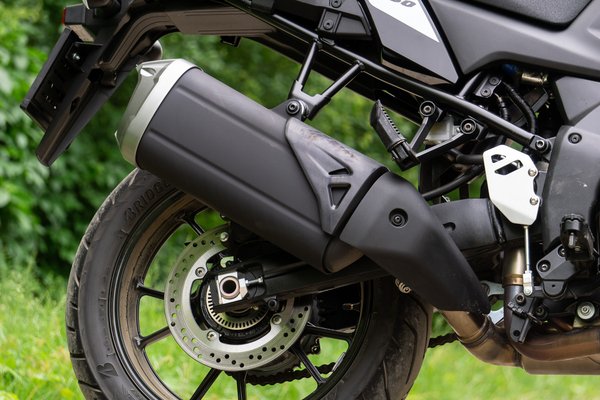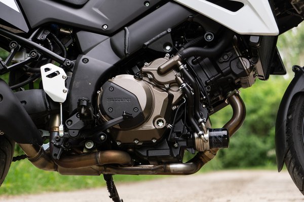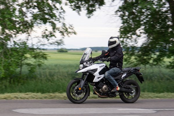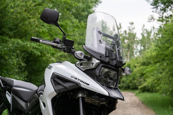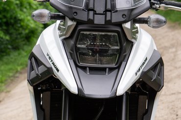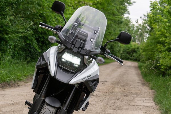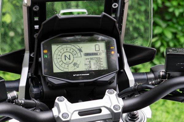 A szélvédő sajnálatos kapufa - a magassága nekem pont jó volt, de súlyos zajokat keltett a sisakomban, illetve egyszerűen béna, hogy semmilyen állítási lehetőség nincs. Az meg egyenesen arcátlan visszalépés, hogy a korábbi évjáratokon menet közben is állítható - a drágább XT-n két pozícióban lehet hangolni, de ahhoz is le kell szállni a motorról. Mintha direkt nem vennének tudomást arról, hogy a konkurencia ezt a kérdést már megoldotta. A fekete-fehér LCD kijelző szintén a trendek után kullog, mostanra minden komoly ellenfél a színes TFT érintőképernyőknél tart. A Suzuki mellett elszaladt az idő, egyszerűen nem értik, vagy nem érdekli őket, merre megy a világ - mintha a motorgyártás terén elveszítették volna a motivációt. Nagy villantás nincs, ezt a fajta borostás, nyers élményt pedig nehéz rámelegíteni egy ügyfélre, ha nem direkt ezt keresi.