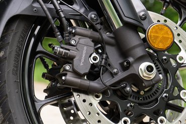 A fékek egyébként bődületesek, ezek a Tokico nyergek voltak korábban Hayabusán és GSX-R-en, olyannak is érződnek. Pontosan ilyen volt az előzőn is, már akkor is megdöbbentem, mekkorát fognak a 310-es tárcsán. A nagy fékerő már vagy 20 éve nem kihívás, az adagolhatóság és a visszajelzések annál inkább. Kis tempónál még harapósnak és agresszívnek érzed, aztán a helyére kerül minden. Erről a sportmotorosok is elismerően fognak nyilatkozni.
