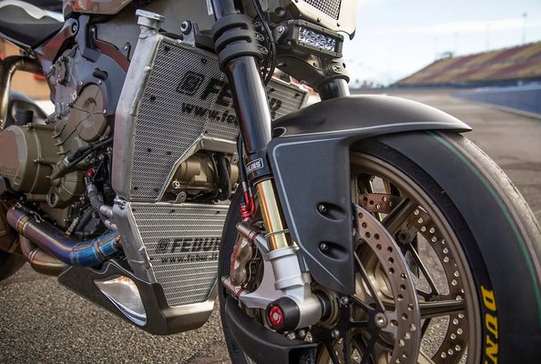 Igyekeztek féken tartani a motor tömegét, amit nem szénszálból, azt alumíniumból gyártottak le. Új villahidakat és a gyárinál magasabb csutkakormányt készítettek, illetve olyan apróságokat is lecseréltek, mint a gyári oldaltámaszt vagy a lábtartókat. A féket sem hagyták meg eredetinek, az ABS-t kikötötték és a Brembo M50-es nyergektől is megváltak - a helyükre a MotoGP-ből származó nikkelezett Brembo nyergek kerültek.