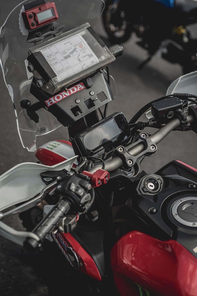 A 17-es kerekekre TKC80-as gumikat húztak, hogy legalább aszfalton se legyen jó, a klasszikus kerek lámpa helyére pedig ralis stílusú tornyot építettek, navigációval és roadbook olvasóval.