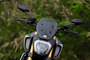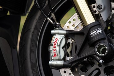 Nem hiszem, hogy az alapváltozat Brembo M4.32 fékeivel bármi gond lenne, de a versenycuccok minden motornak jól állnak. Nem lepett meg, hogy az M50-es nyergek ezzel a radiális főfékhengerrel brutálisan fognak, a Brembo kínálatában ennél feljebb csak a Stylema van, amit pl. a Panigale V4-re is szerelnek. Nincs kezdeti heves harapás, egyszerűen csak tökéletesen adagolható, és tisztán közvetíti, mennyi még benne a tartalék és hogy állunk a tapadással, miközben olyat lassul, mint egy kilós sportmotor.