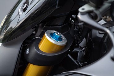 Az Öhlins futómű is csodás, viszont ez az egyetlen elem, amibe sportszakmailag bele tudok kötni: az Öhlins-nek van remek félaktív futóműve, amihez az MT-10SP-ben volt szerencsém, és egy ilyen luxusmotorhoz, amit dedikáltan nem a pályamókusok vesznek, egyszerűen jobban illene. Senki ne mondja, hogy a célcsoport majd nekiáll tekergetni a nyomófokozati csillapítást, viszont igényük lenne arra, hogy egy gombnyomással hozzáigazítsák a körülményekhez - nyolc és fél millióért pláne.