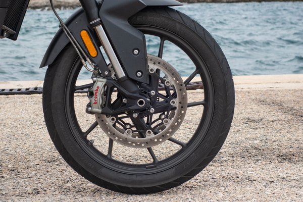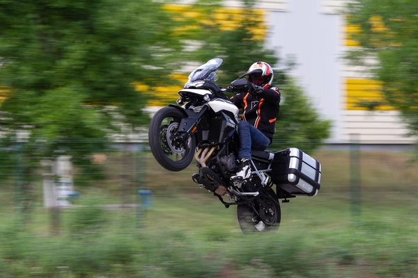 Papíron a célt elérték, változatlan csúcsteljesítmény (95 lóerő) mellett a nyomaték és a teljesítmény is a teljes fordulatszám-tartományban kábé tíz százalékkal növekedett. Hogy ebből mennyit írhatunk a növelt lökettérfogat számlájára, azt sosem fogjuk megtudni. De igazából mindegy, mert az új blokk a gyakorlatban veszi a lapot, mindenhol tol és cefet jól szól! Kisebb fordulatról terhelhető, mint az Africa Twin sorkettese, és tovább is húzatható. Ilyen muzikális túrenduró jelenleg biztosan nincs másik – az orgánuma szerintem sokkal inkább a V4-eseket idéz, mintsem a V2-est. És ez igaz a járáskultúrára is: finom rezgések ugyan vannak, de ez csak tartósan nagyobb sebességű autópályázásnál észrevehető. Az unalmas kilóméterfalást a tempomat mellett a kifejezetten ügyesen kialakított szélvédelem teszi kellemesebbé: nem bubogott a sisakom, és hevesebb záporesőben sem lett vizes a farmerom.