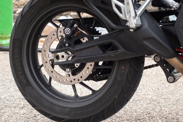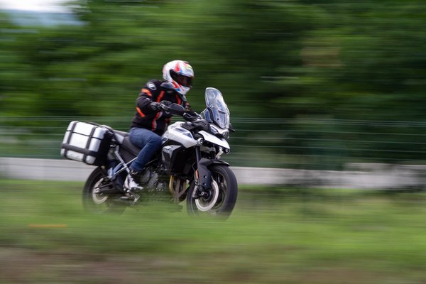 A vírus miatt júniusra tolódott szezonkezdő adriai kanyarvadászaton a Tiger nemcsak túramotorként lett bevetve. A lassúnak nem nevezhető brigádban több ezres sportmotor is volt, nekem pedig illett nem feltartani őket. Ezért még indulás előtt Sport állásba tekertem a Marzocchi -tól származó első teleszkópokat. Ehhez még csavarhúzóra sincs szükség, csak kézzel két klikket visszatekerni a teljesen betekert csillapításon. Hátul pedig a Sport menetmód kiválasztásával automatikusan keményedik a csillapítás is, a rugó-előfeszítés álló helyzetben állítható a terheléshez. (utas, utas+csomag, stb.) Ettől még nyilván nem lesz belőle Street Triple, de agilitását tekintve érzésre megközelíti a Tracer GT-t.