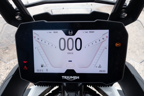 Másnap a Karlobag-Senj szakasz szűkebb és kifogástalan burkolatú kanyarjaiban azért volt bennem némi vágyódás még feszesebb futómű, sportosabb gumik és némileg nagyobb teljesítmény után. De lehet, hogy a sportosabb motorok után csak egyszerűen nem bízok meg eléggé az elöl 100-as, hátul 150-es Metzeler Tourance-okban. Mindenesetre másodikban így is elég sokszor villogott sport üzemmódban a kipörgés-gátló visszajelzője, illetve a guminyomás-szenzor szerint a hátsó keréken elég nagyokat ingadozott a nyomás. Ilyen forszírozott üzemre természetesen csak nagyon jó minőségű burkolaton van lehetőség, a teljesítmény is csak akkor hiányzik, ha jóval erősebb motorokkal próbálja az ember tartani a lépést. Fékteljesítmény terén viszont a Tiger hozza a sportmotorok szintjét – nem csoda, hiszen ugyanaz a Brembo Stylema nyereg díszeleg rajta, mint például Speed Triple RS-en. Az emberi interfész egy IMU-vezérelt kanyar-ABS-el is meg van támogatva. Ilyen jól adagolható fék nem sok túramotoron van, ez egészen biztos.