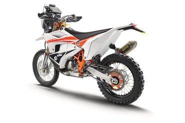A futóművet a KTM-eknél megszokott módon a WP szállítja, elöl 48-as XACT Pro villa, hátul pedig egy minden paraméterében állítható rugóstag próbálja a földön tartani a kerekekeket - a rugóút 305 illetve 300 mm. Versenymotorról van szó, teljesítményadatot nem adnak meg, viszont a száraz tömege nyilvános, 139 kiló.