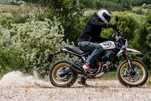 Barangolni lehet vele, ahová egy V-Strommal vagy egy GS-sel bemész, ott ez is boldogul, de nem ezzel leszel a homokbányák királya. És éppen emiatt feleslegesek is rá ezek Pirelli Scorpion Rally STR gumik, mert hiába egészen ügyesek terepen, közel sem fognak akkorát, mint egy rendes endurógumi, főleg az eleje nem, és könnyen eltömődik a minta. Aszfalton sem különösebben jó, 130-140-es tempónál már rendesen berázza a minta a motort. Egy olyasmivel, mint ami a többi Scrambleren van, sokkal jobban jársz, sőt, tovább megyek, istenigazából egy hegyes profilú sportgumit húznék rá, hogy kiélhessem minden jóságát.