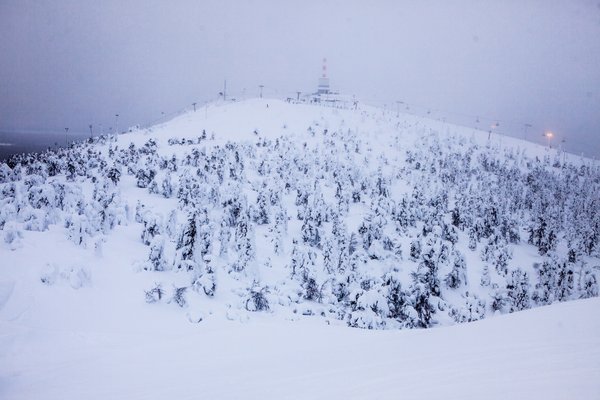 Ezért inkább a lazáztunk egyet – Kallio mellett nem bonyolult – elfogadtunk egy csésze kávét, megkóstoltuk Ronja – Matti barátnője – süteményét, megvártuk míg összepakol, és újra útnak indultunk. Suur-Hamari mindent csinál, amit te vagy én, sőt még sokkal többet, így miután elrakta túlélőfelszerelését, felkötötte az utánfutót a terepjárója mögé, bepattant, és nyomott egy kövéret. A sarki boltban megálltunk még némi élelemért, a parkolójában több hómobil állt, mint autó, de Rukában állítólag ez normális télvíz idején.