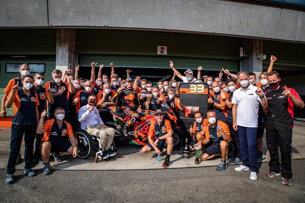 Celebrations all round! 🙌@BradBinder_41 makes history, taking his and @KTM_Racing first win in #MotoGP 🏆 #CzechGP 🇨🇿 pic.twitter.com/old12HGOFU — MotoGP™🏁 (@MotoGP) August 9, 2020