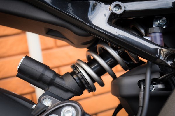 A 45 fokos hengerszög, a magas és karcsú hengerek, meg a vízhűtés-mentesség béklyóiból megszabadulva azért csak el kell helyezni valahol egy jókora villanymotort, meg egy utazóbőröndnyi akkumulátort. A Harley aszongya, a legnehezebb alkatrész, a motor került alulra, de szerintem az akksi legalább olyan nehéz, és úgy is érezni. Úgy általában is nehezebbnek érzem, mint a katalógusban megadott 250 kiló. 15 kWh ólálkodik a fekete kredencben.. Mi van?! A 15 kWh az annyi, mint... az 1-es Nissan Leaf 24 kWh, de ez meg egy motorkerékpár.