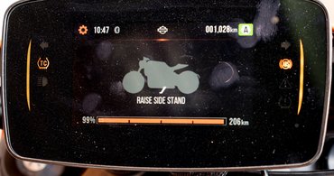 A gázmarkolathoz került a vezérlése, amit rendesen meg is csináltak, tehát tulajdonképpen nem hiányzik az ujjal nyomkodás. A navi viszont úgy működik, hogy a telefonunkra töltjük a HD appot, de nem jeleníti meg a térképet, csak a kísérő utasításokat, hogy ennyi, meg annyi méter után forduljunk balra, meg jobbra. Gyakorló túrázóként egy százezer forintos Garmint raktam a saját Harleymra, ami kesztyűben is nyomkodható, és mivel a motor saját sebességmérője a tankon van, nem a balesetmegelőzés melegágya rápillantgatni, gyakorlatilag a Garmint használom műszerfalnak. Lehet, hogy nagyokat úgyse csavaroghatunk a Live Wire-rel, de ez az appos megoldás még úgy is béna.