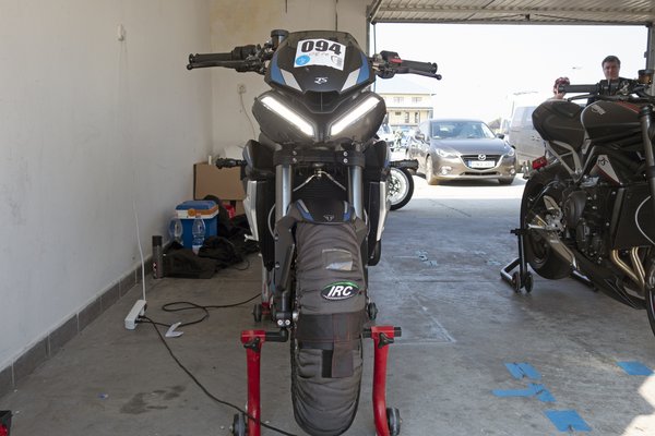 A csapatunk összeállítása természetesen nem volt véletlen. Minimum kettő, maximum három versenyzőt indulhat az endurance-on saját motorjával, a cseréknél az időmérő transzpondert kell a soron következő motorra áthelyezni. Ádám a jóga mellett pályamotorozást oktat, a Triumph Budapest színeiben érkező Varga Zoli pedig néhány éve még a magyar bajnokságban húzta a gázt. Így három egyforma Street Triple-lel indultunk a „Street” kategóriában. A csapatunk nevét ki nem találnátok: Triplák!