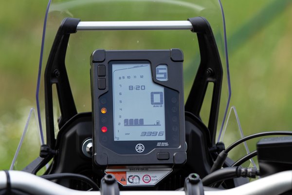 Elektronikában elmarad a konkurensektől, nincsenek menetmódok,kipörgésgátló, se tempomat, mindössze egy ABS-t kapott, ami végre kikapcsolható. Kicsit vicces is, hogy ezt Offroad Mode-nak hívják, miközben máshol ugyanez alatt terepre optimalizált, jelentős elforgást engedő kipörgésgátlót és aktív első blokkolásgátlót értenek, módosított karakterisztikájú gázkarral. Az Offroad Mode tökéletes párja a műszerfal, amely a ralimotorok roadbook olvasóját hivatott imitálni - jó magasan is van, elvileg azért, hogy ne kelljen nagyon levenni a szemed az útról, de akkor már inkább az utat nézem, mint ezt. Nem kell mindenhova színes TFT meg Bluetooth kapcsolat, de a kis műanyaggal lekerített fokozatkijelző tíz éve is gagyinak számított volna. Nem az a baj, hogy monokróm, hanem hogy ronda. A 12V aljzattal sincs semmi bajom, például a szivargyújtóról működtethető kompresszorhoz jól jöhet, de 2020-ban minden más már USB-ről megy. Éppen egy túramotorra kéne ilyesmi gyárilag. A hagyományos indexek sem önmagukban cikik, hanem kontextusba helyezve: egy ledes fényszórós, 3,5 milliós motoron bénák.