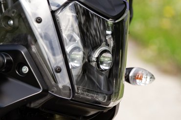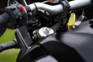 Ha van gyenge pontja, akkor az első fék az - ha nagyon húzod, megáll, de ennyi az összes érdeme, a fékkar útjának az első centijén a féklámpa felkapcsolásán kívül nem történik semmi. Aztán elkezd felépülni a fékerő, összeül a teló, és elkezd lassítani, de nyugodtan kezdődhetne kapásból innen a történet. Nem tudom mi erre a magyarázat, a Brembo cuccok semmiképpen nem gagyik, de amikor már a boltba járós motorokra is radiálisan rögzített monoblok nyergek kerülnek, ez már kevés.
