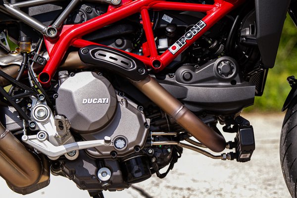 Sajnos, vagy hál'Istennek, a Ducati csak néhány évvel később, 2007-ben dobta piacra az 1100-as Hypert. Nyilván a KTM-től kaptak hozzá kedvet, hiszen a karbis 950 Supermoto akkor már két éve kapható volt. Csak éppen az olaszoké még szép is lett: a lég-olajos mászóka főleg S változatban, Öhlinsszel és karbonnal gazdagon megszórva volt szívszorító, nyálcsorgatásra késztető motorkerékpár. Azt a kevés idomot is hibátlan ízléssel rajzolták, azonban az irányjelzővel és tükörrel egybeépített kézvédő jellemzi igazán Terblanche zsenialitását. És ezen kívül minden olyan műszaki megoldás benne volt, amire a hardcore ducatisták a cerkát hegyezik: légolajos blokk száraz kuplunggal, felhúzott dupla kipufogó, egykarú lengővilla. A sok ponton átdolgozott Evo modellekből (2010-től) száműzték a dupla gyújtást, és öt lóerővel (95 LE) lettek erősebbek.