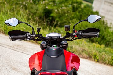 Bár a súlycsökkentés miatt nincs rajta semmilyen felesleges elem, papíron nem különösebben könnyű. Örökös referenciám, a Street Triple RS például tizenkét kilóval könnyebb. Ettől még a Dukszi iszonyúan kezes, kezdő motornak is elmenne – már ha leér róla a lábad és nem érzed cikinek a pötyögést egy tűzpiros célszerszámmal, amit hangulatkeltésre találtak ki. Mellesleg létezik 35 kW-ra fojtott A2-es verziója is. A kormányszöge jóval nagyobb egy csupasznál, a magas üléspozíció és a hosszú rugóutak miatt városban sokkal praktikusabb például a Monsternél.