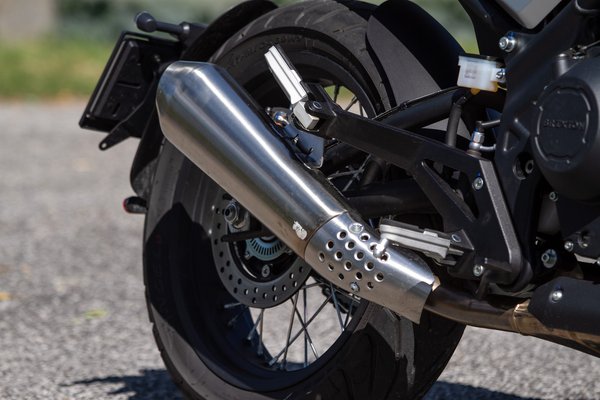 A futómű kimondottan kemény, az úthibák kemény ütéssel jönnek át, ez bizony ráz és pattog, úgy tűnik, Ausztriából nem látszódnak a magyar kátyúk és keresztbordák. Kanyarban viszont nem is kezd úgy himbálózni, mint az egyértelműen alulcsillapított Rebel 500. Nem csak látni, hanem érezni is, hogy az aktuális trendtől eltérően a villaszög igen lapos, ez főleg váltott kanyarban jön ki, amikor egyik oldalról a másikra kell átdobni a motort. Ezen lehetne korrigálni, mert hátul a csillapítás és a rugóelőfeszítés egyaránt állítható (elöl csak a rugóelőfeszítés), de csak lehetne, ugyanis a KYB rugóstagon az előfeszítés állítása csak elméleti opció, mert csak komolyabb bontás árán lehet hozzáférni a körmös kulccsal. A csillapításhoz viszont elég egy hosszú csavarhúzó. Az egyébként tiszteletre méltó, hogy gyárilag jól tapadó Pirelli gumikon érkezik.